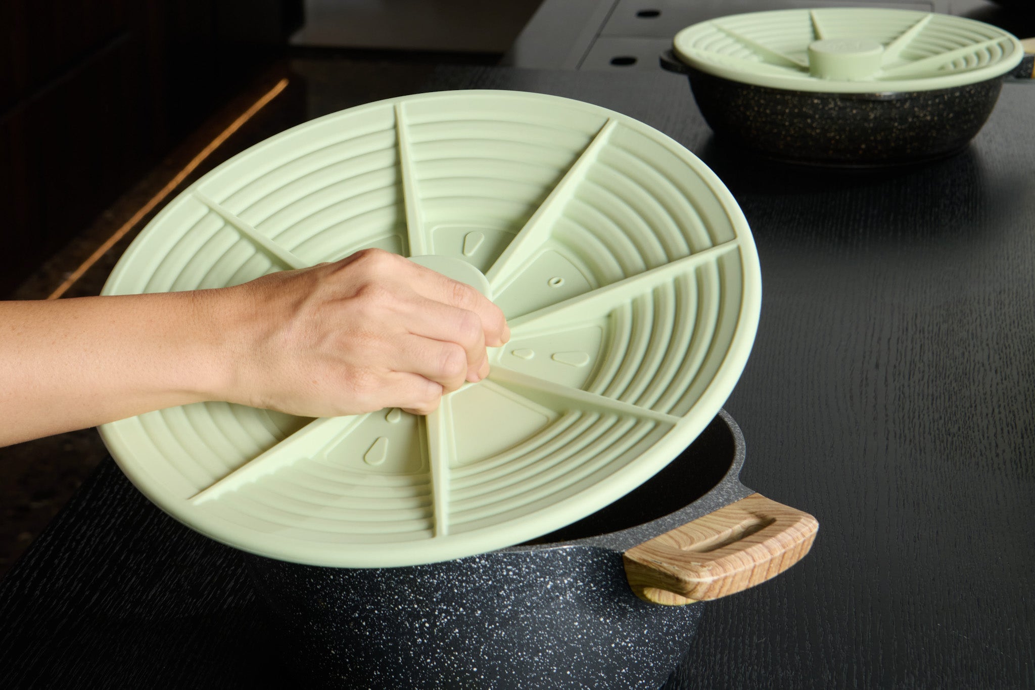 The Alo Aida silicone pot lid is heat resistant, suitable for use with pots, pans, skillets or bowl on the stovetop, in the oven, and even in the microwave. Use it for all your kitchen pans and pots with confidence.
